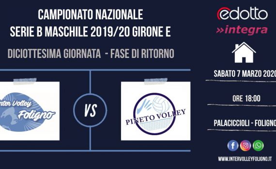 Sabato 7 marzo i biancazzurri della Inter Volley Foligno, dopo la sosta imposta dalla federazione in conseguenza all’emergenza coronavirus, tornano in campo al PalaCiccioli per il diciottesimo turno del campionato nazionale di Serie B, Girone E ospitando la co-capolista BlueItaly Pineto Volley, squadra accreditata al salto di categoria ma che i falchetti proveranno a mettere…