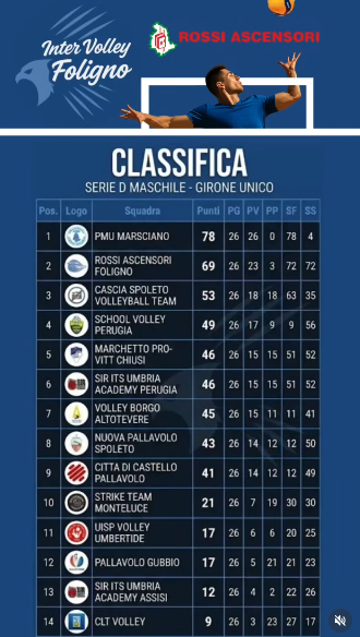 La Rossi Ascensori Foligno chiude al 2° posto un campionato di grande livello, fatto di continuità, impegno e spirito di squadra